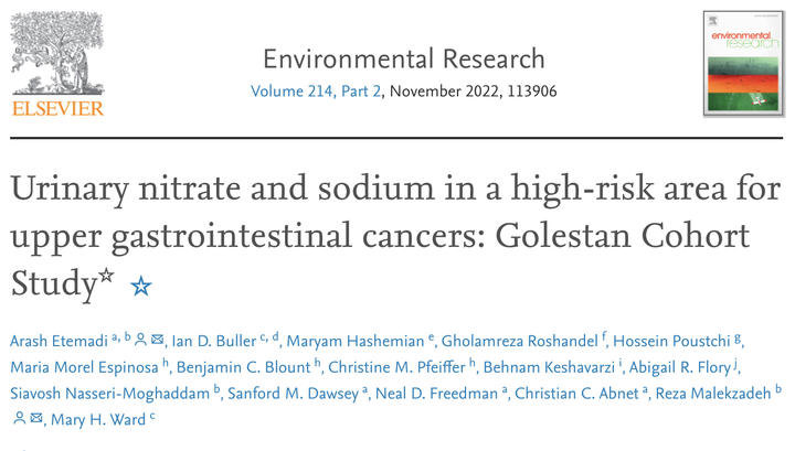 I co-authored an article in Environmental Research entitled “Urinary nitrate and sodium in a high-risk area for upper gastrointestinal cancers: Golestan Cohort Study” led by Dr. Arash Etemadi.