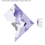 I present an update to my previous post. Starting May 17, 2020 the DC Mayoral Office began releasing testing information by neighborhood on their coronavirus data portal. Molly Tolzmann zmotoly added this feature to her publicly available Google Sheet presented at the DC health planning neighborhood level. The update here can also be found on a public GitHub repository.